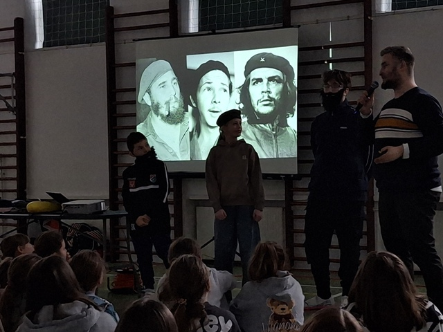 Podróżnik barwnie opowiadał o życiu codziennym mieszkańców Kuby, ich troskach, niskich zarobkach oraz pustych półkach w sklepach. Uczniowie z zaciekawieniem słuchali historii o kubańskich cygarach, pizzy, a także o tamtejszej przyrodzie – krokodylach, krabach i maleńkich kolibrach. Starsza grupa uczniów poznała również postać Fidela Castro oraz historię rewolucji kubańskiej.