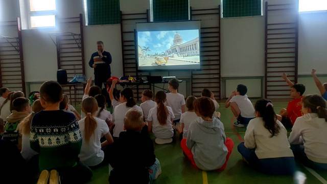 Uczniowie naszej szkoły wzięli udział w wyjątkowym spotkaniu z podróżnikiem, który zabrał ich w fascynującą podróż na Kubę. Prelekcja była dostosowana do dwóch grup wiekowych – młodszych uczniów z klas 1–3 oraz starszych z klas 4–6, dzięki czemu każdy mógł znaleźć coś interesującego dla siebie.